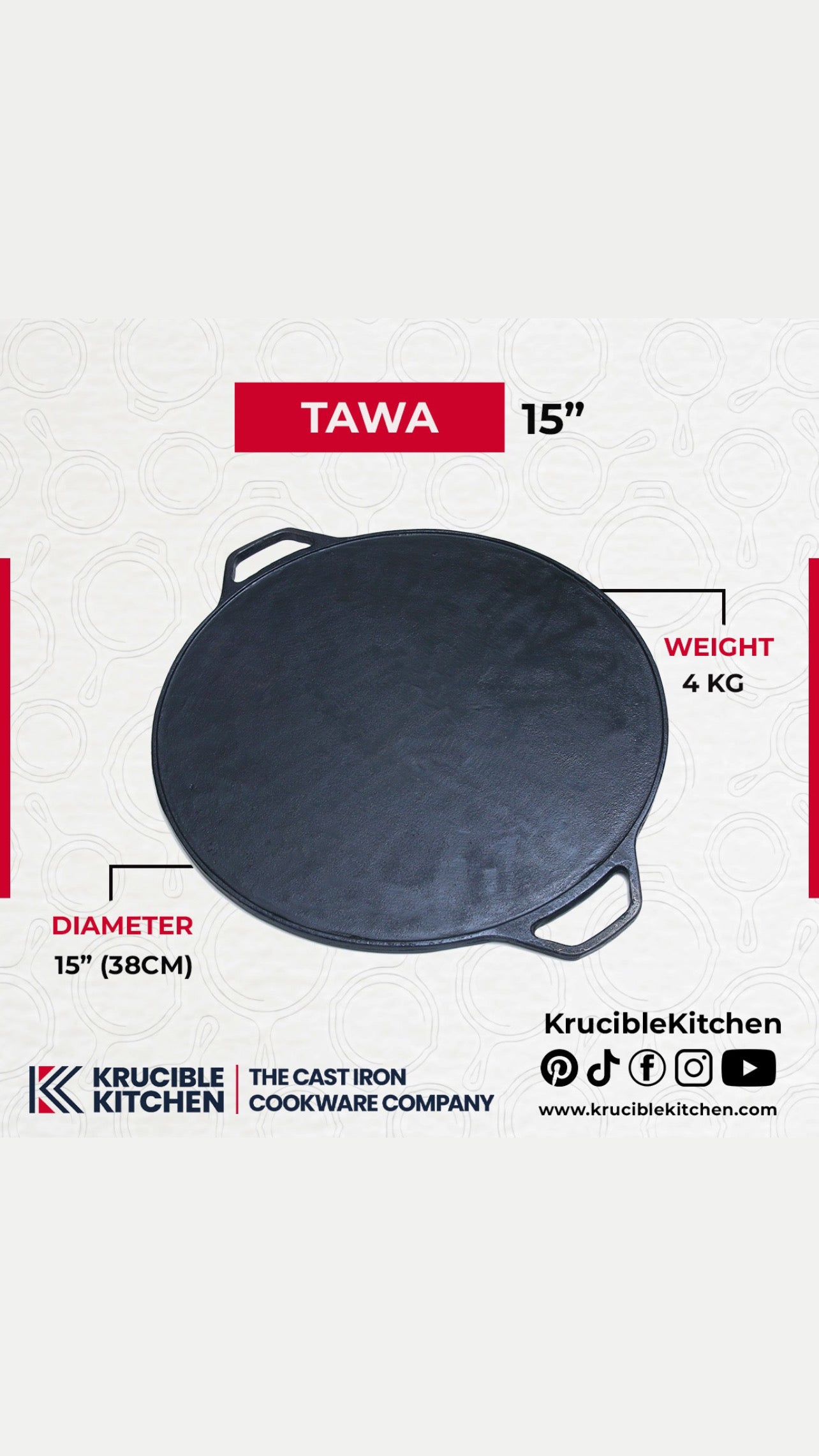 Discover the pinnacle of culinary excellence in Pakistan with Krucible Kitchen's 15" Cast Iron Tawa. Crafted without Teflon or chemical coatings, this robust yet naturally non-stick marvel ensures effortless food release, perfect for a myriad of dishes including roti, parathas, dosas, and beyond. Engineered from durable cast iron, it guarantees unmatched longevity and uniform heat distribution for authentic flavors. Tailored for Desi cuisine, it excels in crafting fluffy rotis, cheesy omelettes, tawa parathas, and succulent fish Tawa fry. Accessible and widely acclaimed, this Tawa isn't just a kitchen essential but a centerpiece for culinary gatherings. Elevate your cooking journey with Krucible Kitchen's 15" cast iron Tawa β the timeless cornerstone for crafting culinary masterpieces.